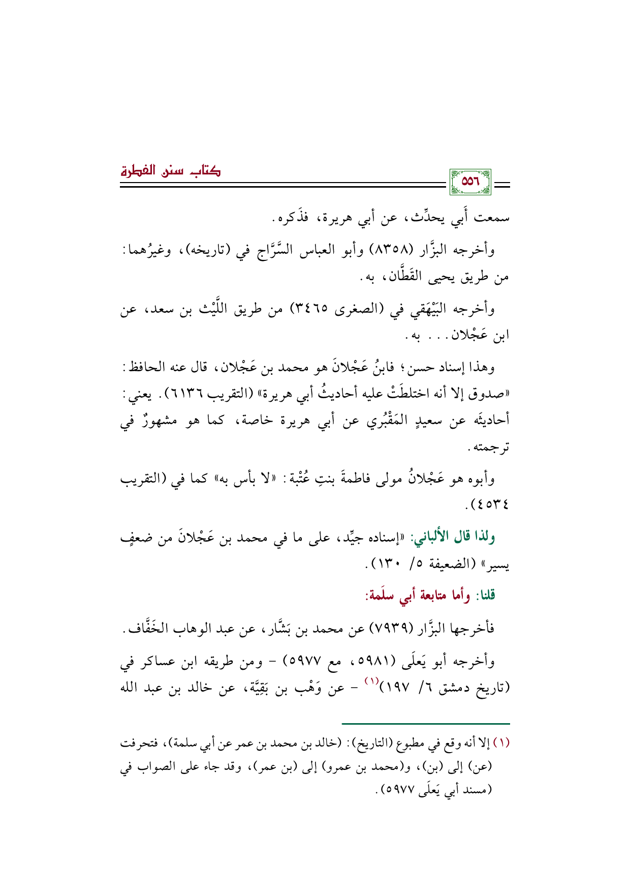 وهذا إسناد حسن؛ فابنُ عَجْلانَ هو محمد بن عَجْلان، قال عنه الحافظ: "صدوق إلا أنه اختلطَتْ عليه أحاديثُ أبي هريرة" (التقريب ٦١٣٦). يعني: أحاديثَه عن سعيدٍ المَقْبُري عن أبي هريرة خاصة، كما هو مشهورٌ في ترجمته.