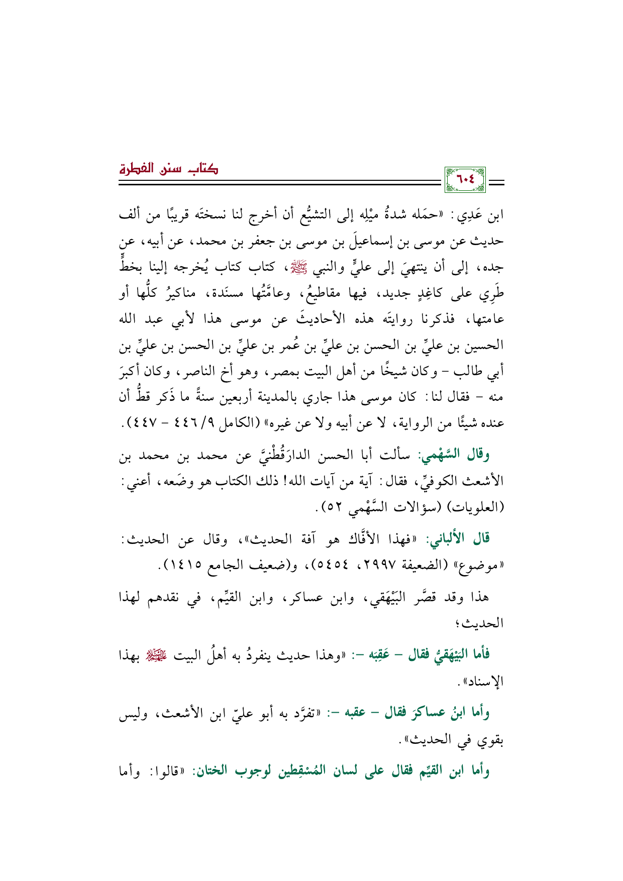 فأما البَيْهَقيُّ فقال- عَقِبَه-: "وهذا حديث ينفردُ به أهلُ البيت عليهم السلام بهذا الإسناد".