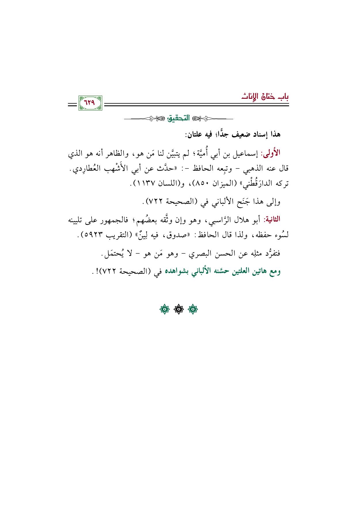 وإلى هذا جَنَح الألباني في (الصحيحة ٧٢٢).