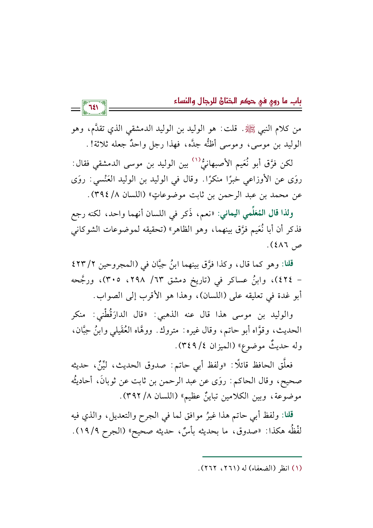 (¬١) انظر الضعفاء له (٢٦١، ٢٦٢).