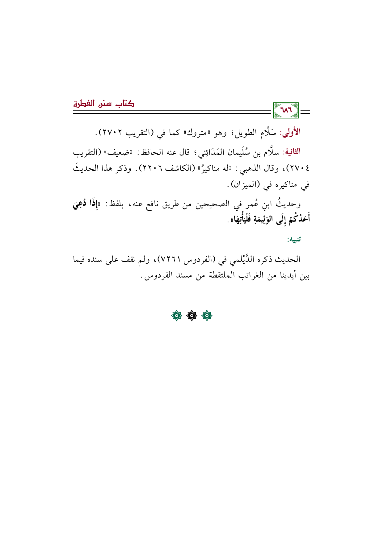 الأولى: سَلَّام الطويل؛ وهو "متروك" كما في (التقريب ٢٧٠٢).