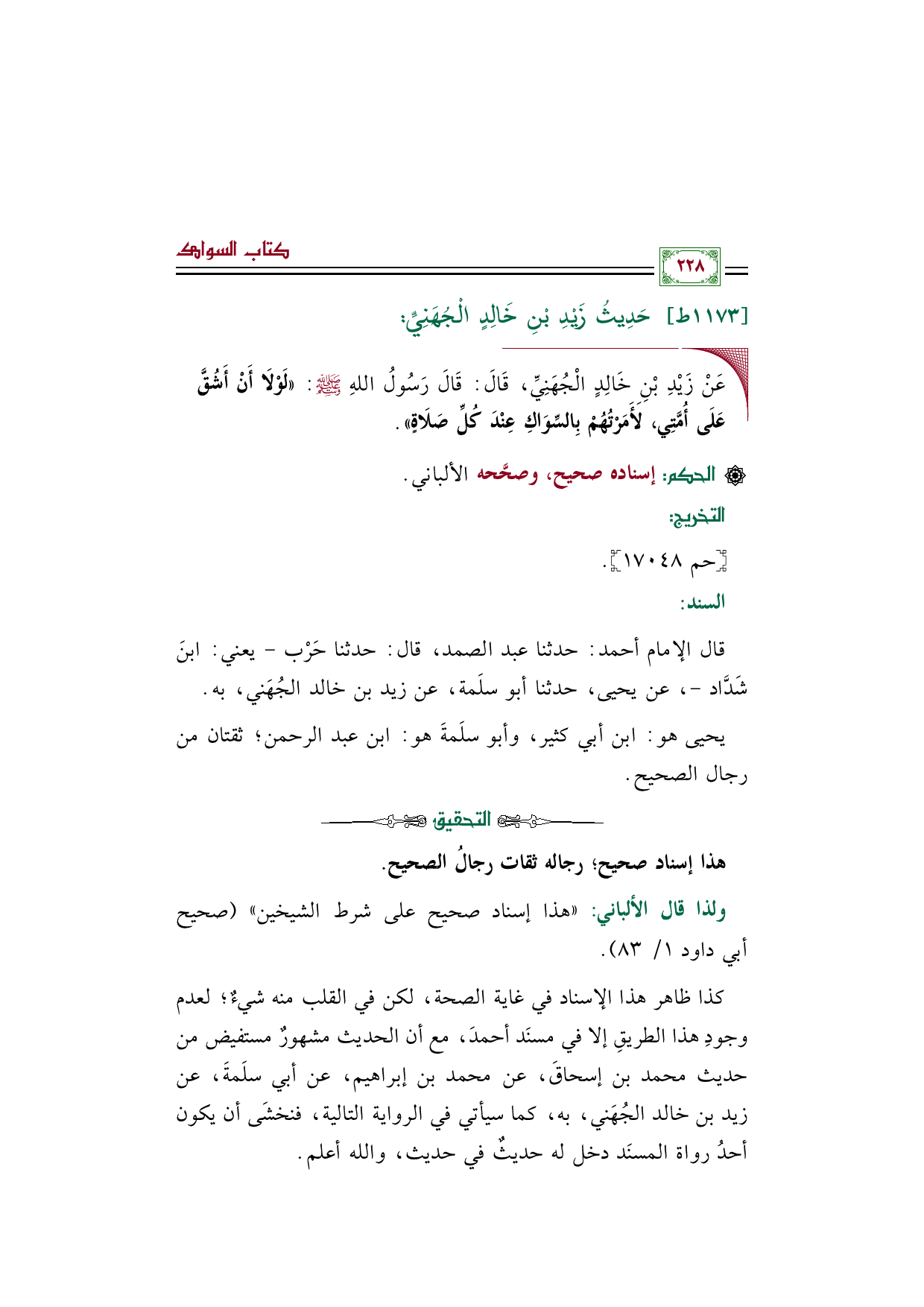 كذا ظاهر هذا الإسناد في غاية الصحة، لكن في القلب منه شيءٌ؛ لعدم وجودِ هذا الطريقِ إلا في مسنَد أحمدَ، مع أن الحديث مشهورٌ مستفيض من حديث محمد بن إسحاقَ، عن محمد بن إبراهيم، عن أبي سلَمةَ، عن زيد بن خالد الجُهَني، به، كما سيأتي في الرواية التالية، فنخشَى أن يكون أحدُ رواة المسنَد دخل له حديثٌ في حديث، والله أعلم.