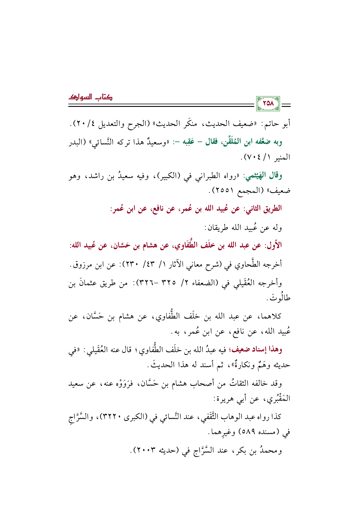 وبه ضعَّفه ابن المُلَقِّن، فقال- عَقِبه-: "وسعيدٌ هذا تركه النَّسائي" (البدر المنير ١/ ٧٠٤).