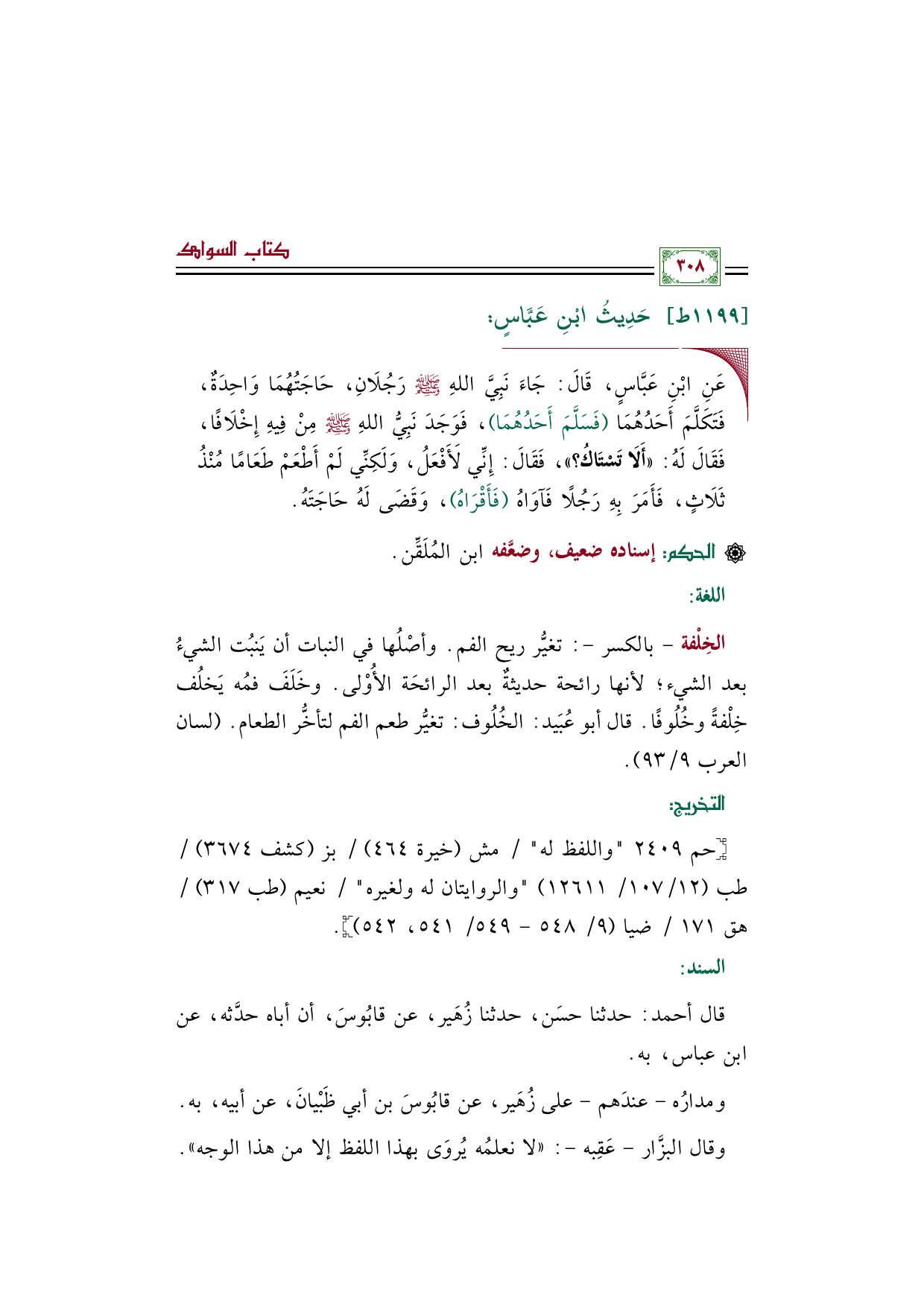 قال أحمد: حدثنا حسَن، حدثنا زُهَير، عن قابُوسَ، أن أباه حدَّثه، عن ابن عباس، به.