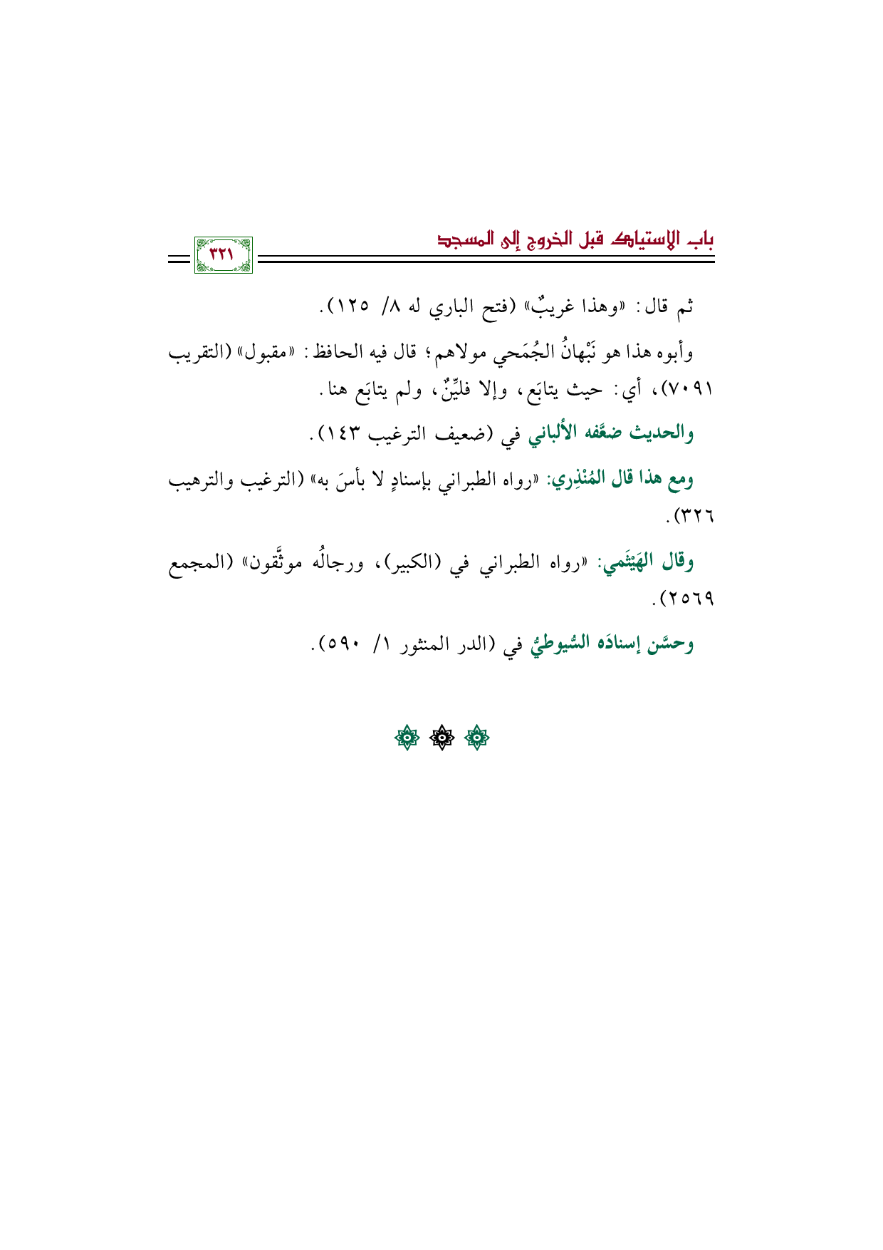 ومع هذا قال المُنْذِري: "رواه الطبراني بإسنادٍ لا بأسَ به" (الترغيب والترهيب ٣٢٦).