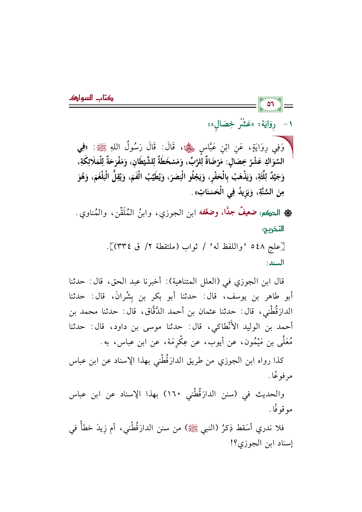 فلا ندري أسَقط ذِكرُ (النبي صلى الله عليه وسلم) من سنن الدارَقُطْني، أم زِيدَ خطأً في إسناد ابن الجوزي؟!