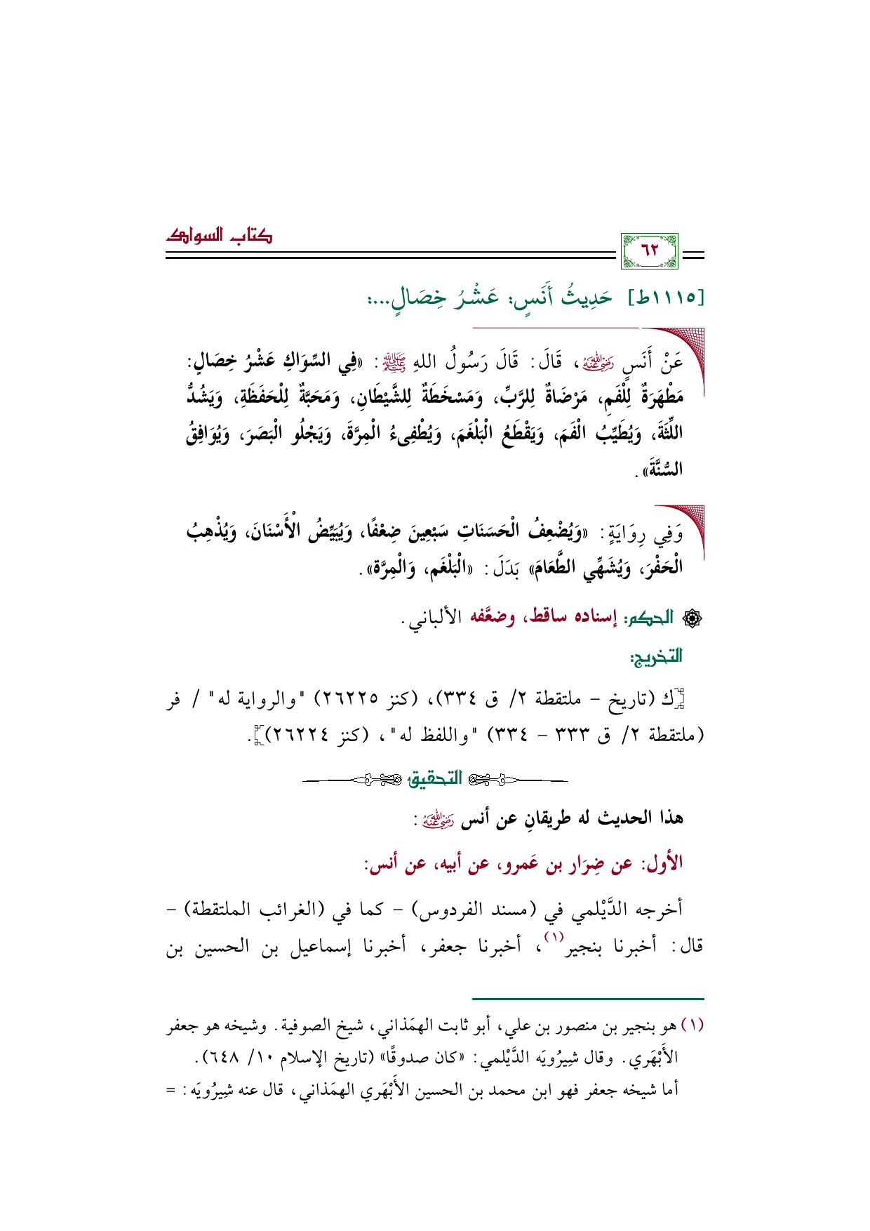 (¬١) هو بنجير بن منصور بن علي، أبو ثابت الهمَذاني، شيخ الصوفية. وشيخه هو جعفر الأَبْهَري. وقال شِيرُويَه الدَّيْلمي: "كان صدوقًا" (تاريخ الإسلام ١٠/ ٦٤٨).