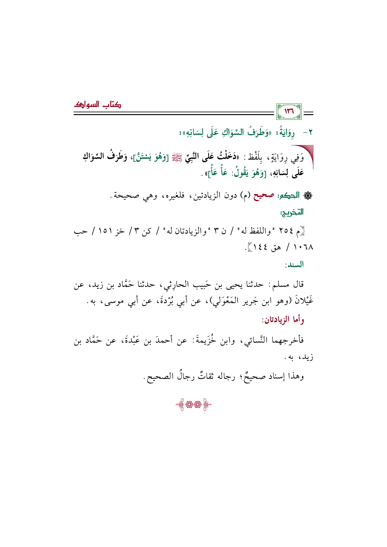 قال مسلم: حدثنا يحيى بن حَبيب الحارِثي، حدثنا حَمَّاد بن زيد، عن غَيْلانَ (وهو ابن جَرير المَعْوَلي)، عن أبي بُرْدةَ، عن أبي موسى، به.