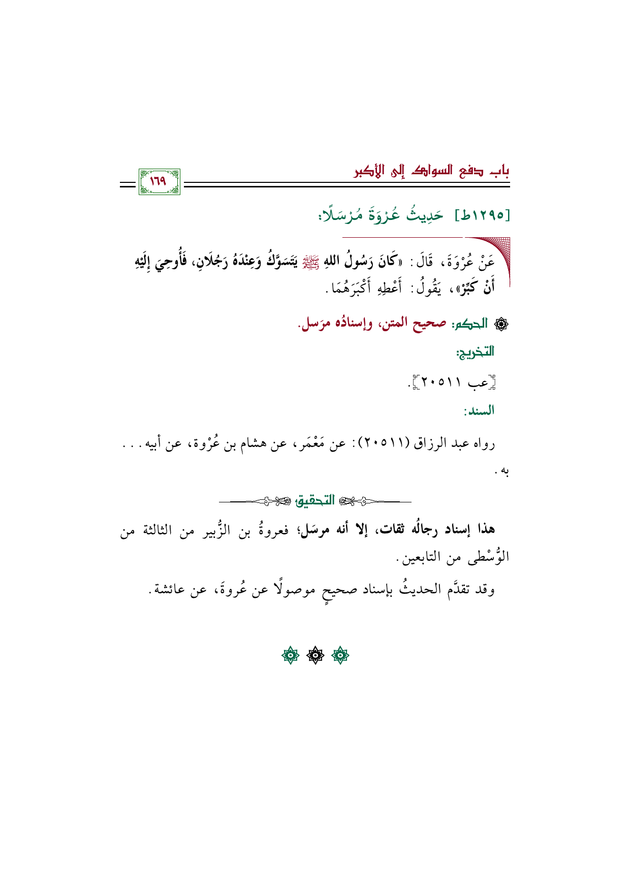 هذا إسناد رجالُه ثقات، إلا أنه مرسَل؛ فعروةُ بن الزُّبير من الثالثة من الوُّسْطى من التابعين.