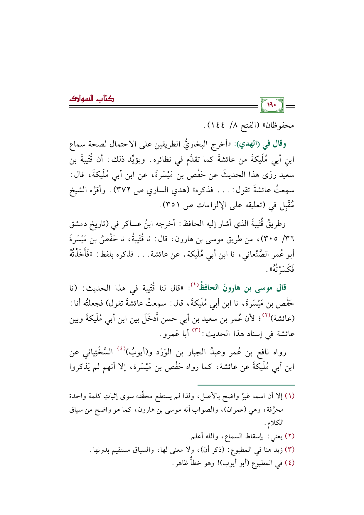 (¬١) إلا أن اسمه غيرُ واضح بالأصل، ولذا لم يستطع محقِّقه سوى إثباتِ كلمة واحدة محرَّفة، وهي (عمران)، والصواب أنه موسى بن هارون، كما هو واضح من سياق الكلام.