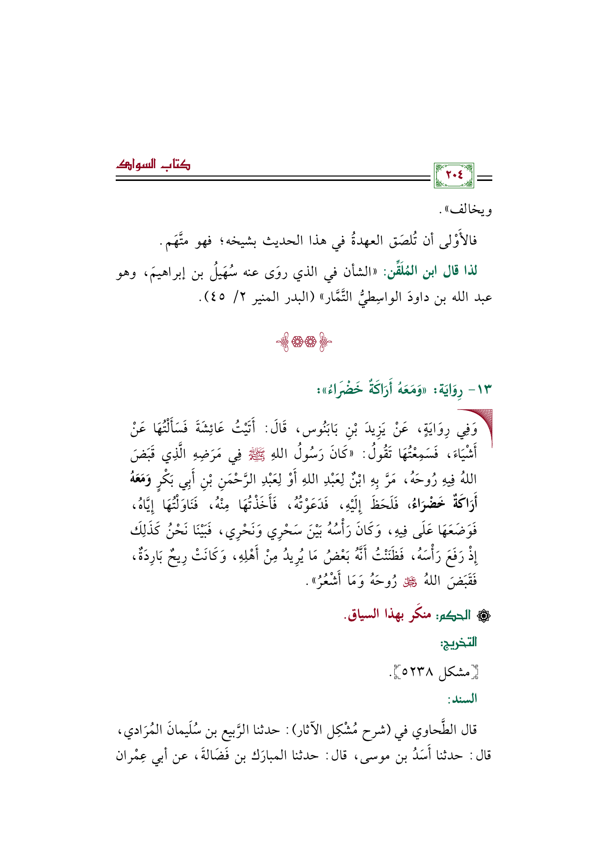 لذا قال ابن المُلَقِّن: "الشأن في الذي روَى عنه سُهَيلُ بن إبراهيمَ، وهو عبد الله بن داودَ الواسِطيُّ التَّمَّار" (البدر المنير ٢/ ٤٥).
