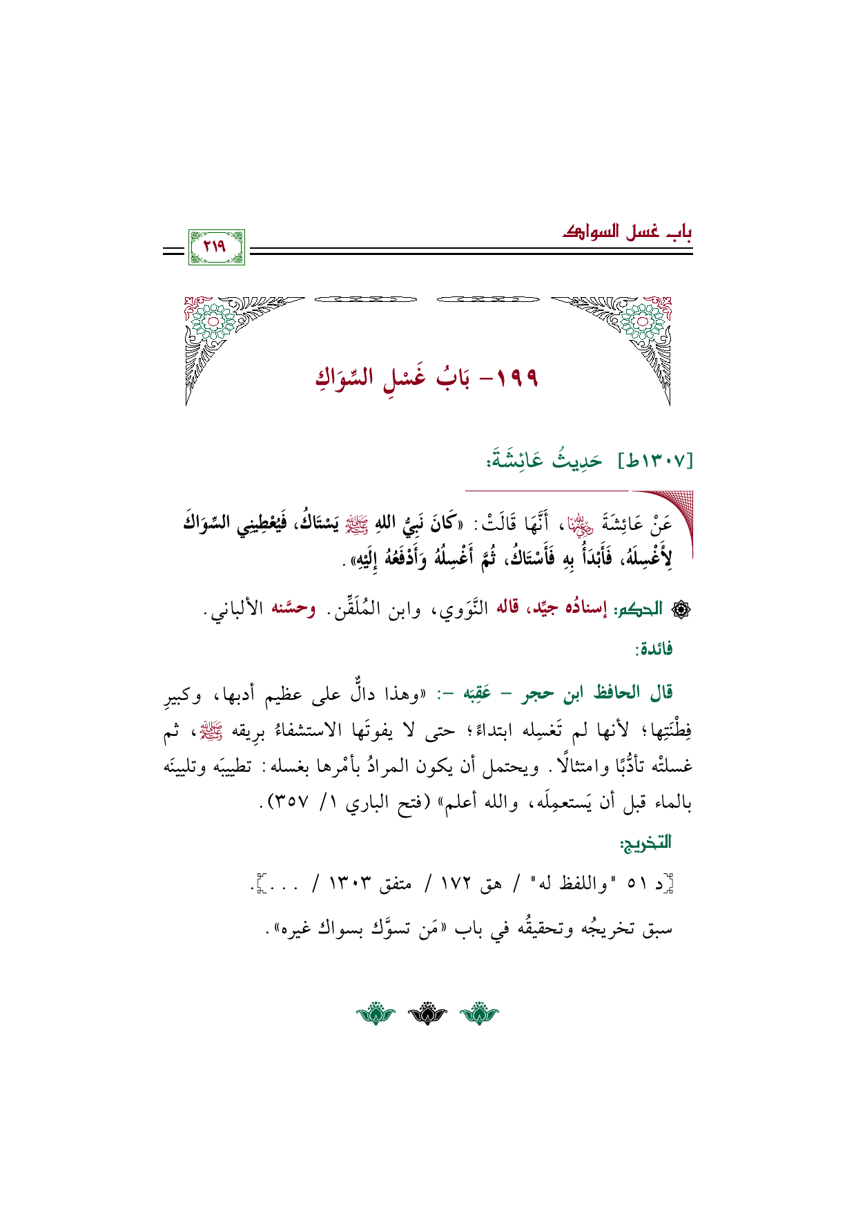 سبق تخريجُه وتحقيقُه في باب "مَن تسوَّك بسواك غيره".