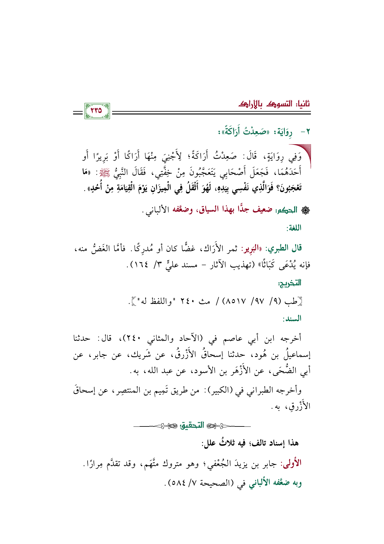الأولى: جابر بن يزيدَ الجُعْفي؛ وهو متروك متَّهَم، وقد تقدَّم مِرارًا.