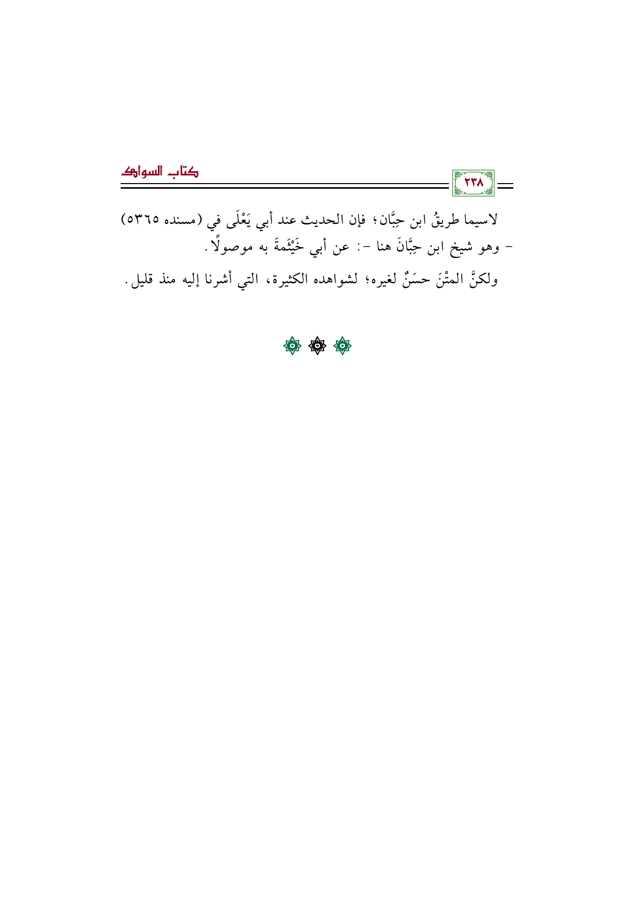 ولكنَّ المتْنَ حسَنٌ لغيره؛ لشواهده الكثيرة، التي أشرنا إليه منذ قليل.