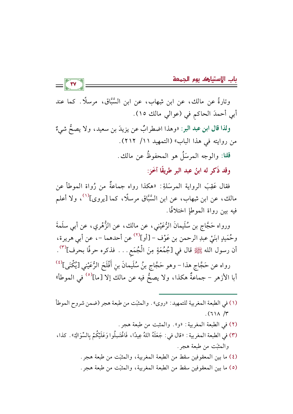 (¬٣) في الطبعة المغربية: "قال في: جَعَلَهُ اللهُ عِيدًا، فَاغْتَسِلُوا وَعَلَيْكُمْ بِالسِّوَاكِ". كذا، والمثبَت من طبعة هجر.