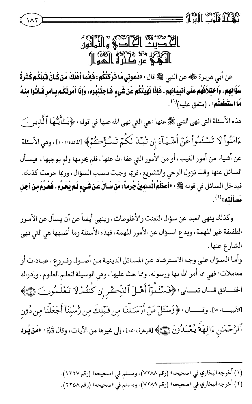 الحديث الحادي والثمانون: النهي عن كثرة السؤال.