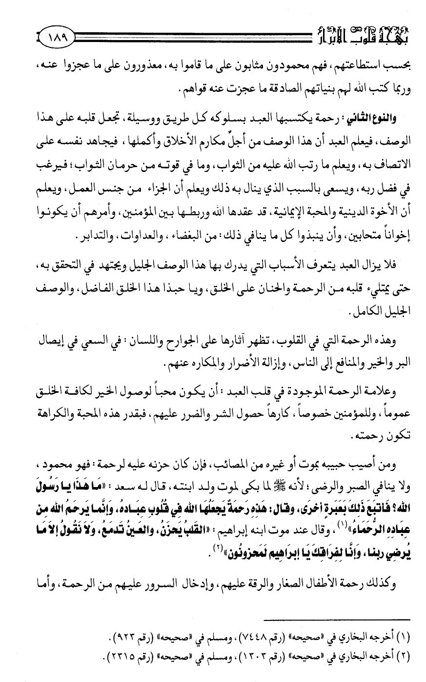 فلا يزال العبد يتعرف الأسباب التي يدرك بها هذا الوصف الجليل ويجتهد في التحقق به، حتى يمتلئ قلبه من الرحمة، والحنان على الخلق. ويا حبذا هذا الخلق الفاضل، والوصف الجليل الكامل.