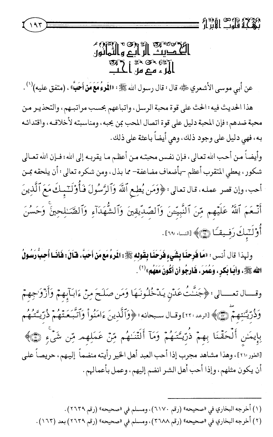 الحديث الرابع والثمانون: المرء مع من أحبّ.