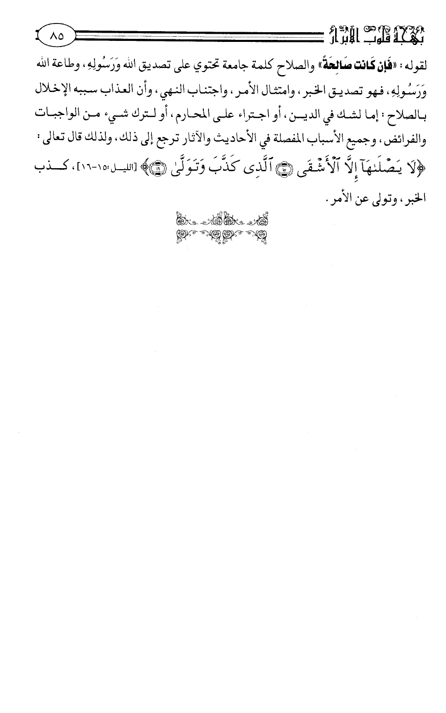 لقوله: "فإن كانت صالحة" والصلاح كلمة جامعة تحتوي على تصديق الله ورسوله، وطاعة الله ورسوله. فهو تصديق الخبر، وامتثال الأمر، واجتناب النهي، وأن العذاب سببه الإخلال بالصلاح: إما لشك في الدين، أو اجتراء على المحارم، أو لترك شيء من الواجبات والفرائض. وجميع الأسباب المفصلة في الأحاديث والآثار ترجع إلى ذلك. ولذلك قال تعالى: {لا يَصْلَاهَا إِلا الأَشْقَى * الَّذِي كَذَّبَ وَتَوَلَّى} [الليل:15-16] , كذب الخبر، وتولى عن الأمر.