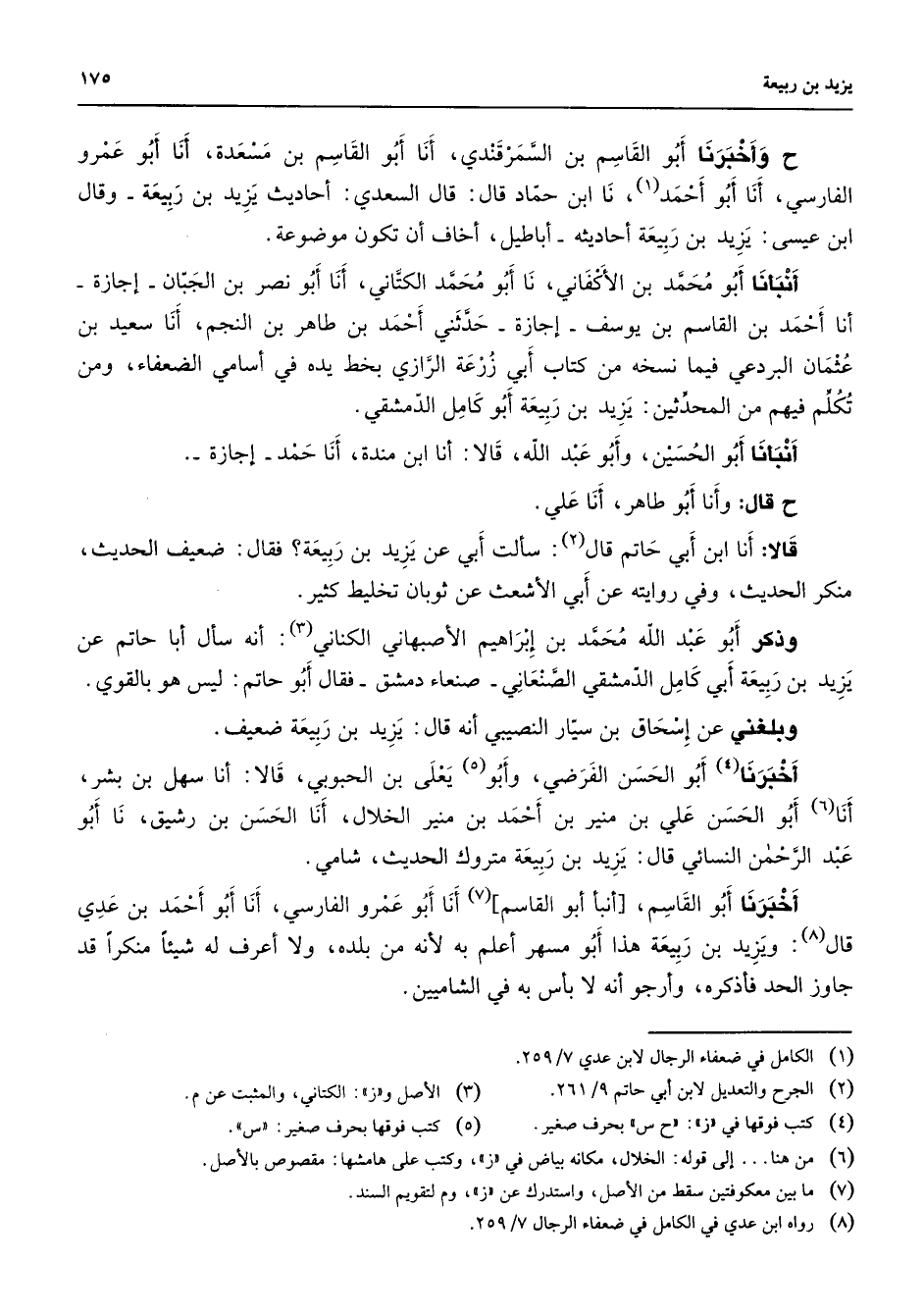 (1) الكامل في ضعفاء الرجال لابن عدي 7 / 259