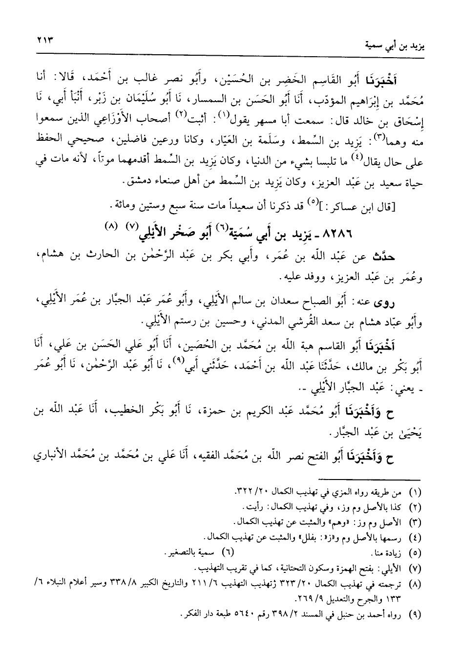 (8) ترجمته في تهذيب الكمال 20 / 323 تهذيب التهذيب 6 / 211 والتاريخ الكبير 8 / 338 وسير أعلام النبلاء 6 / 133 والجرح والتعديل 9 / 269