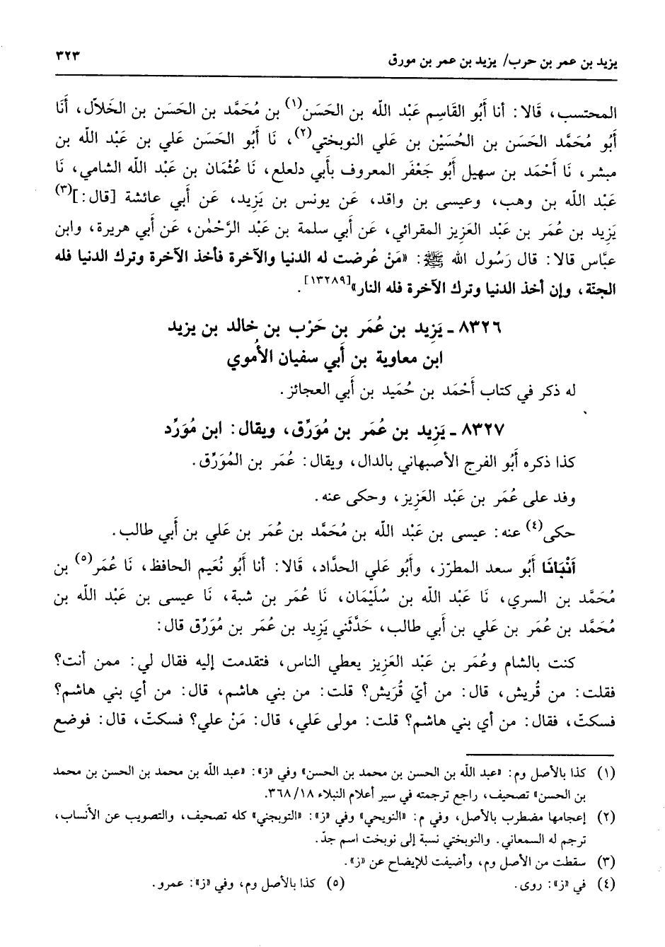8326 - يزيد بن عمر بن حرب بن خالد بن يزيد ابن معاوية بن أبي سفيان الأموي له ذكر في كتاب أحمد بن حميد بن أبي العجائز