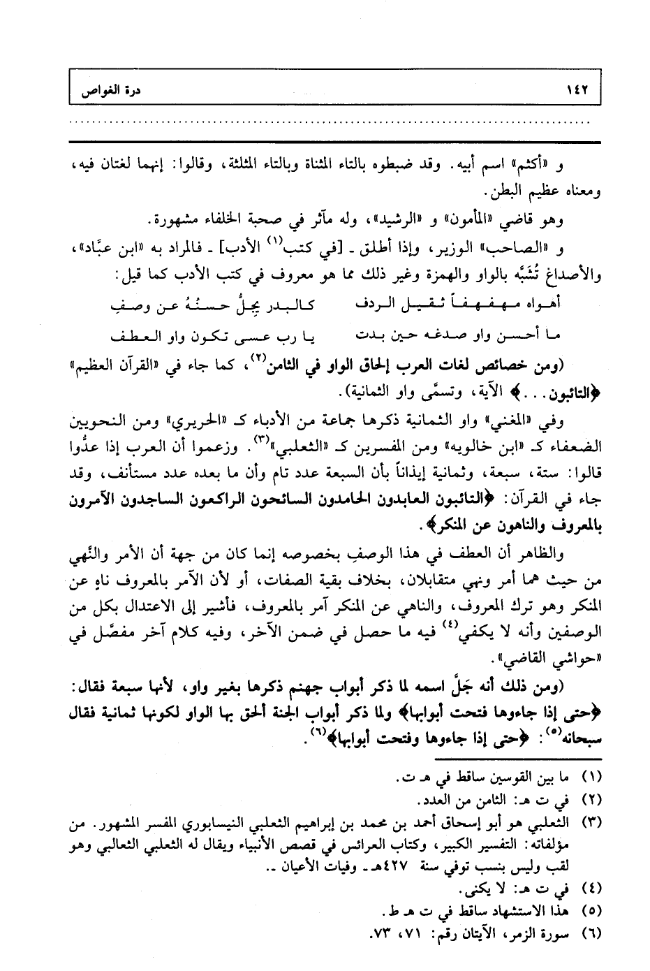 (ومن خصائص لغات العرب إلحاق الواو في الثامن، كما جاء في "القرآن العظيم" {التائبون ... } الآية، وتسمى واو الثمانية).