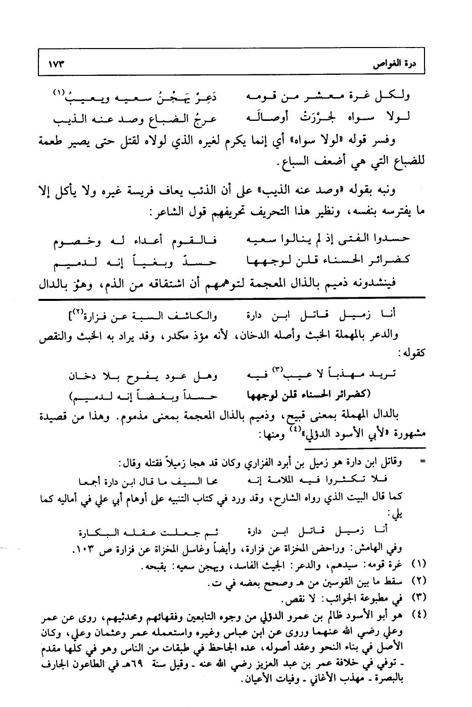 وبالدال المهملة يعنى قبيح، وذميم بالدال المعجمة بمعنى مذموم. وهذا من قصيدة مشهورة "لأبي الأسود الدؤلي" ومنها: