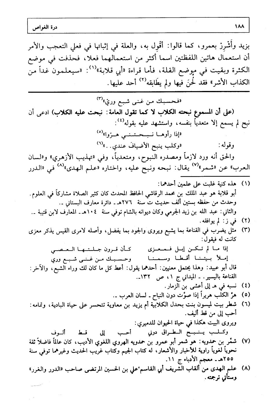 (على أن المسموع نبحته الكلاب لا كما تقول العامة: نبحت عليه الكلاب) ادعى أن نبح لم يسمع إلا متعديا بنفسه، واستشهد عليه بقوله: