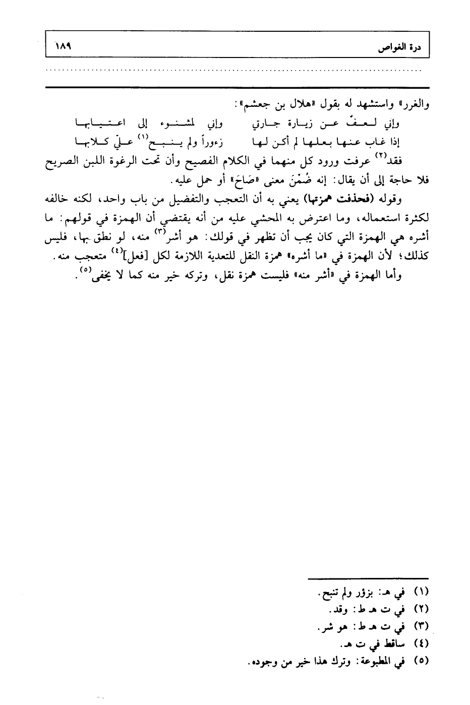 والغرر" واستشهد له بقول "هلال بن جعشم":