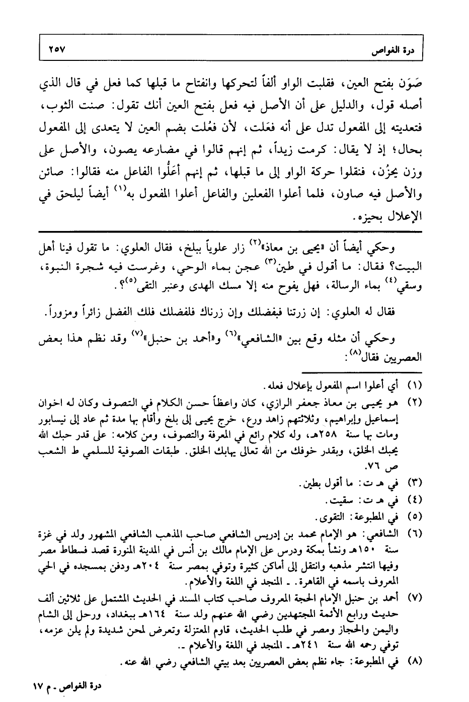وحكى أيضا أن "يحيى بن معاذ" زار علويا ببلخ، فقال العلوي: ما تقول فينا أهل البيت؟ فقال: ما أقول في طين عجن بماء الوحي، وغرست فيه شجرة النبوة، وسقي بماء الرسالة، فهل يفوح منه إلا مسك الهدى وعنبر التقى؟ .