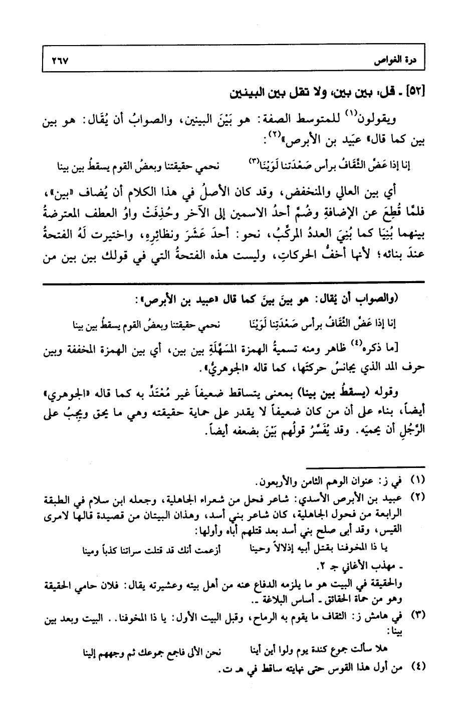 (والصواب أن يقال: هو بين بين كما قال «عبيد بن الأبرص»: