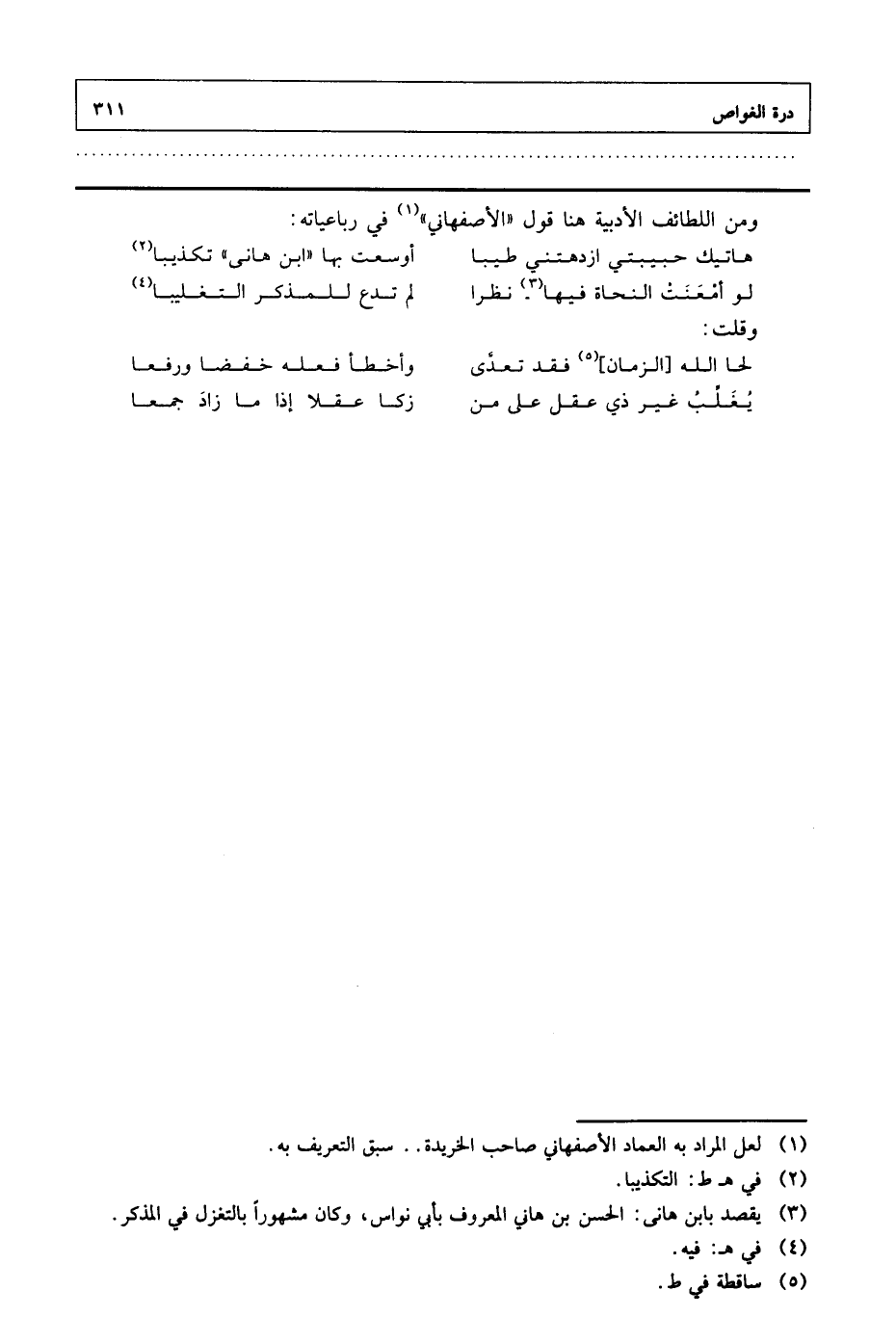 ومن اللطائف الأدبية هنا قول "الأصفهاني" في رباعياته: