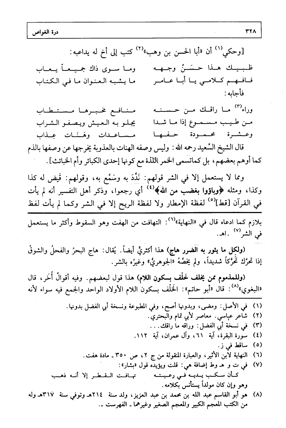 قال الشيخ السعيد رحمه الله: وليس وصفه الهنات بالعذوبة يخرجها عن وصفها بالذم كما أوهم بعضهم، بل كما تسمى الخمر اللذة مع كونها إحدى الكبائر وأم الخبائث].