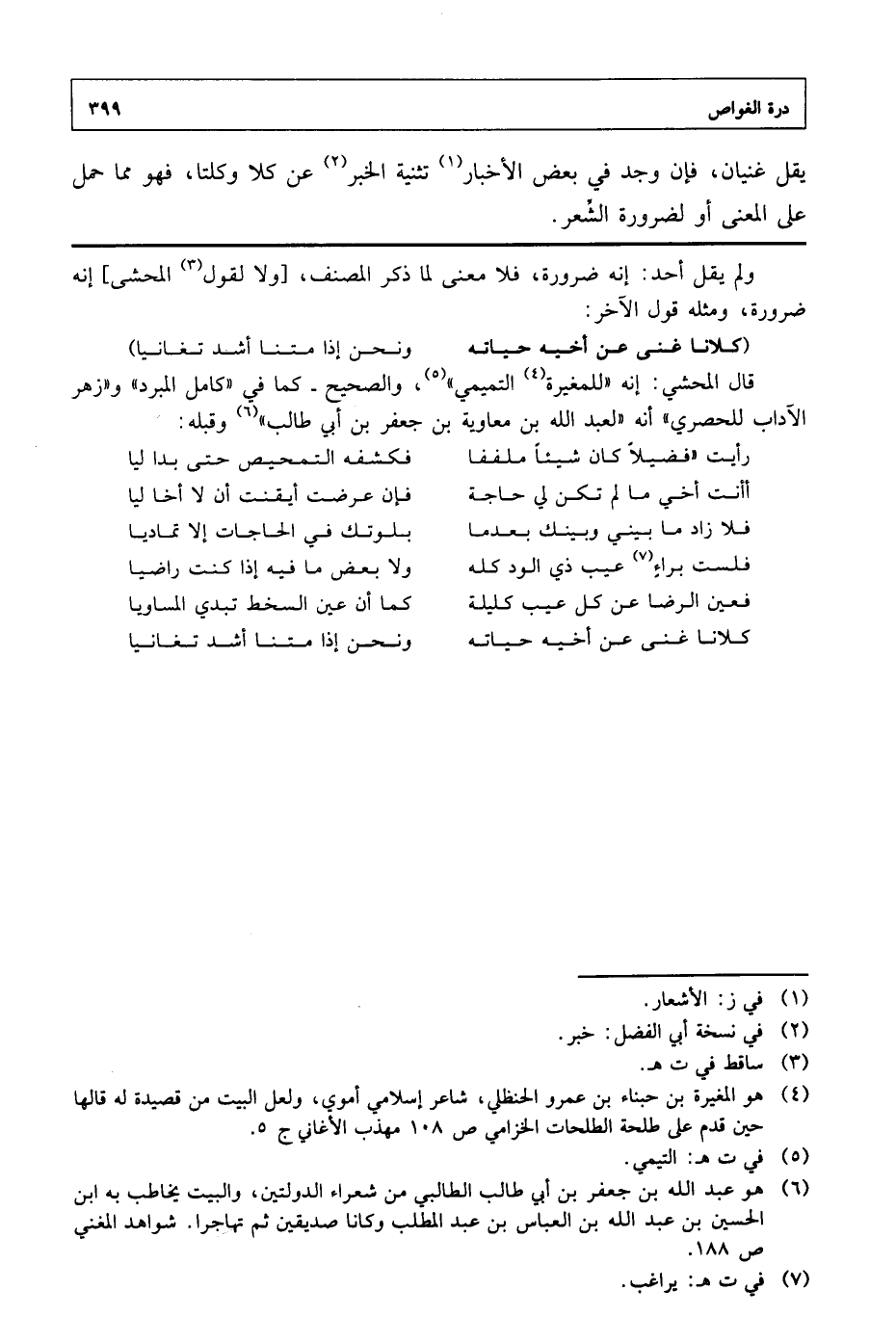 قال المحشى: إنه "للمغيرة التيميمى"، والصحيح - كما في "كامل المبرد" و " زهر الآداب للحصرى" أنه "لعبد الله بن معاوية بن جعفر بن أبى طالب" وقبله: