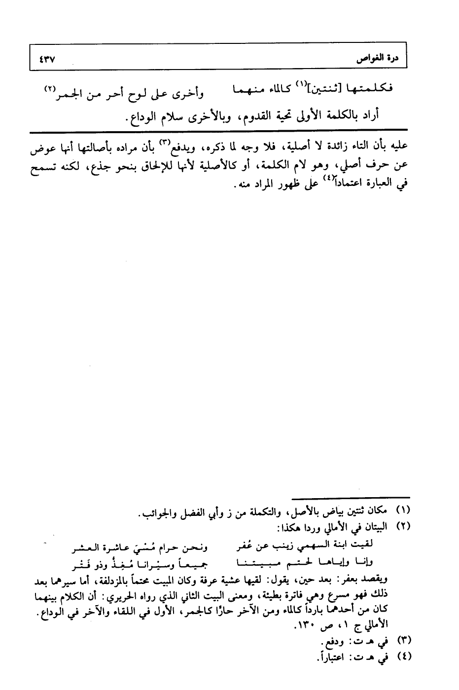 (فكلمتها [ثنتين] كالماء منهما ... وأخرى على لوح أحر من الجمر)