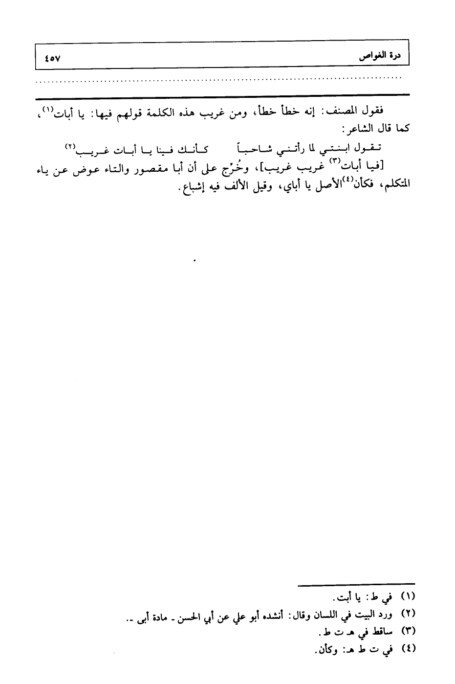 فقول المصنف: إنه خطأ خطأ، ومن غريب هذه الكلمة قولهم فيها: يا أبات، كما قال الشاعر: