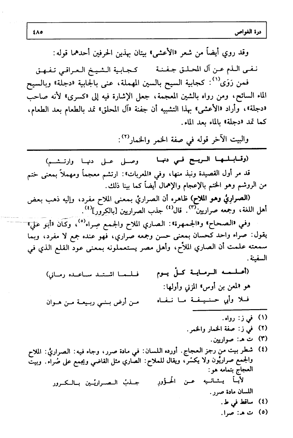 (الصراري وهو الملاح) ظاهره أن الصراري بمعنى الملاح مفرد، وإليه ذهب بعض أهل اللغة، وجمعه صراريين. قال جذب الصراريين [بالكرور].