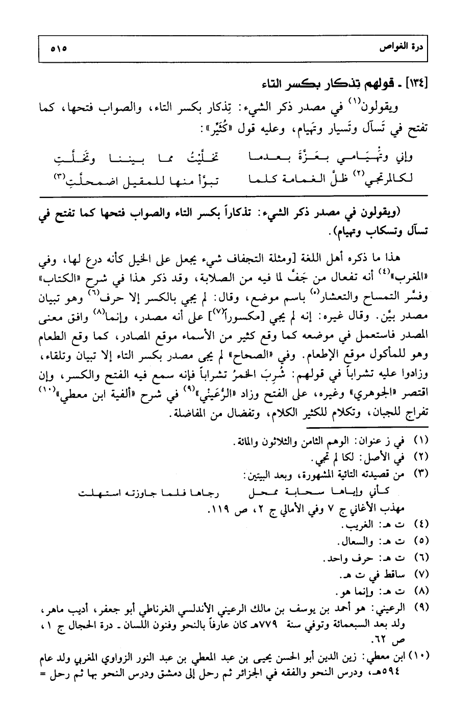 [134]- قولهم تذكار بكسر التاء