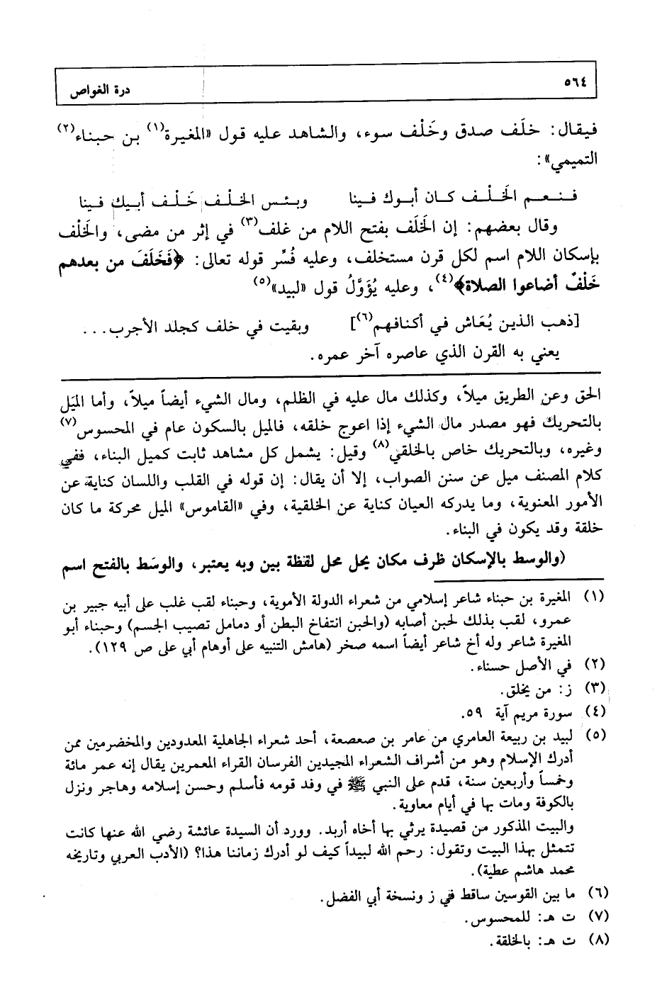 فيقال: خلف صدق وخلف سوء، والشاهد عليه قول "المغيرة بن حبناء التميمي":