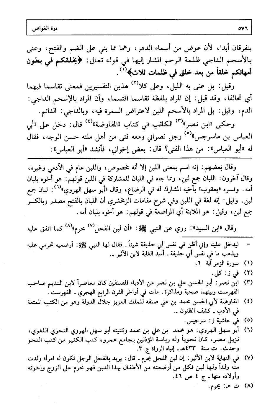 وقال "ابن السيد": روي عن النبي صلى الله عليه وسلم: "أن لبن الفحل محرم" كما اتفق عليه