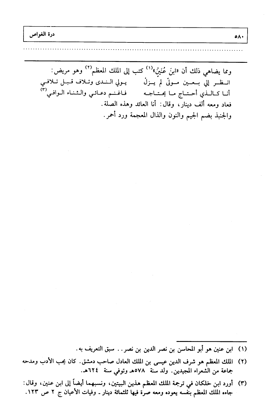 ومما يضاهي ذلك أن "ابن عنين" كتب إلى الملك المعظم وهو مريض: