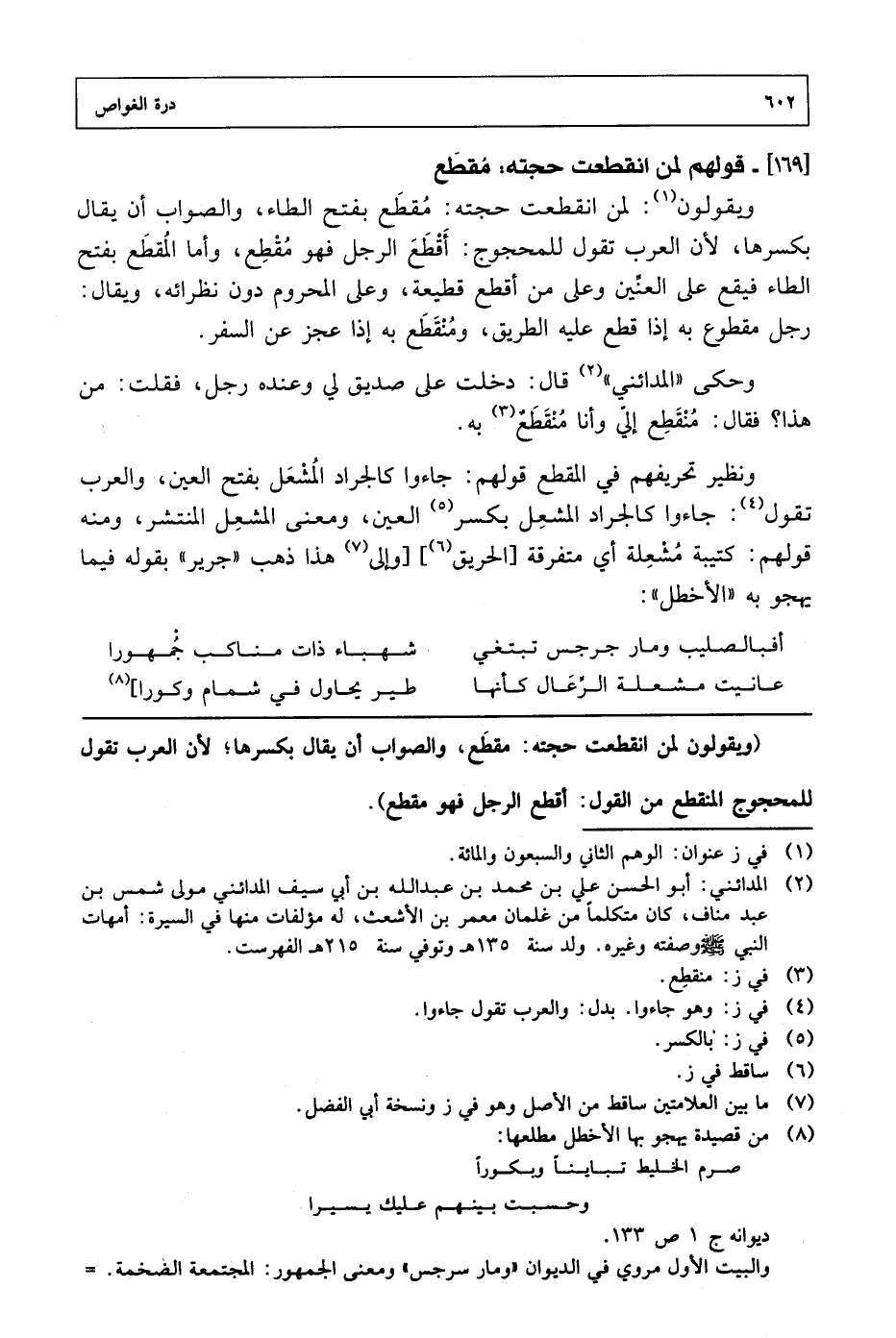 [169]- قولهم لمن انقطعت حجته: مقطع