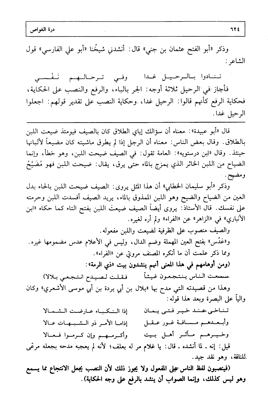 (ومن أوهامهم في هذا المعنى أنهم ينشدون بيت "ذي الرمة":