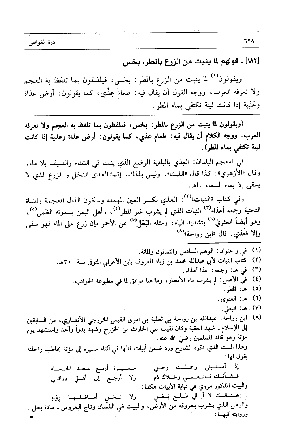 [182]- قولهم لما ينبت من الزرع بالمطر: بخس