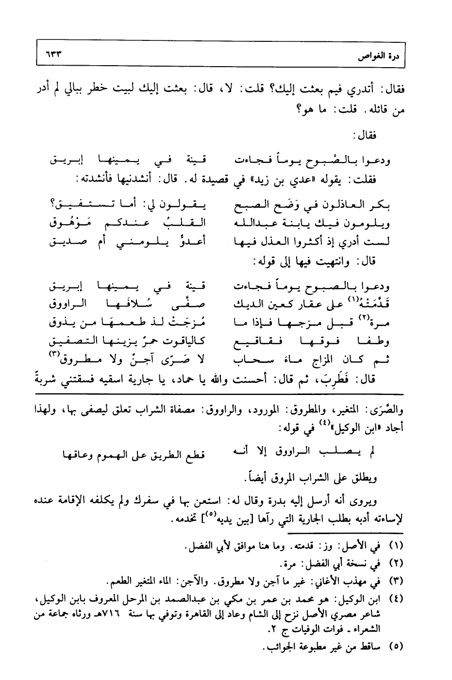 فقلت: يقول "عدي بن زيد" في قصيدة له. قال: أنشدنيها فأنشدته: