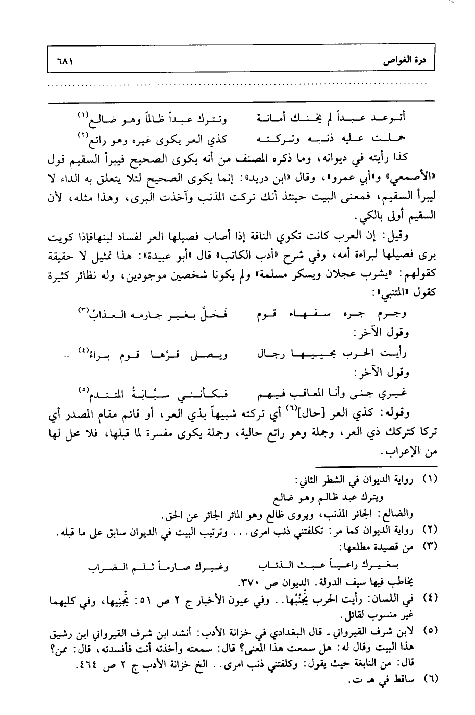 (وجرم جره سفهاء قوم ... فحل بغير جارمه العذاب)