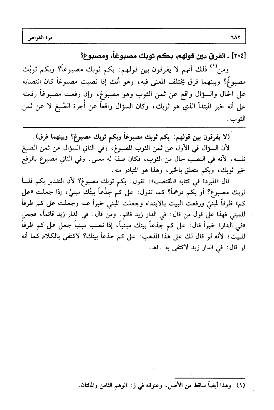[204]- الفرق بين قولهم: بكم ثوبك مصبوغاً، ومصبوغ؟