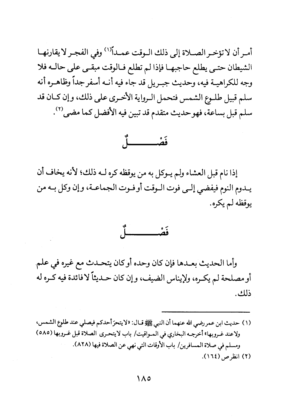 أمر أن لا تؤخر الصلاة إلى ذلك الوقت عمدا وفي الفجر لا يقارنها الشيطان حتى يطلع حاجبها فإذا لم تطلع فالوقت مبقى على حاله فلا وجه للكراهية فيه وحديث جبريل قد جاء فيه أنه أسفر جدا وظاهره أنه سلم قبيل طلوع الشمس فتحمل الرواية الأخرى على ذلك وأن كان قد سلم قبل بساعة فهو حديث متقدم قد تبين فيه الأفضل كما مضى.