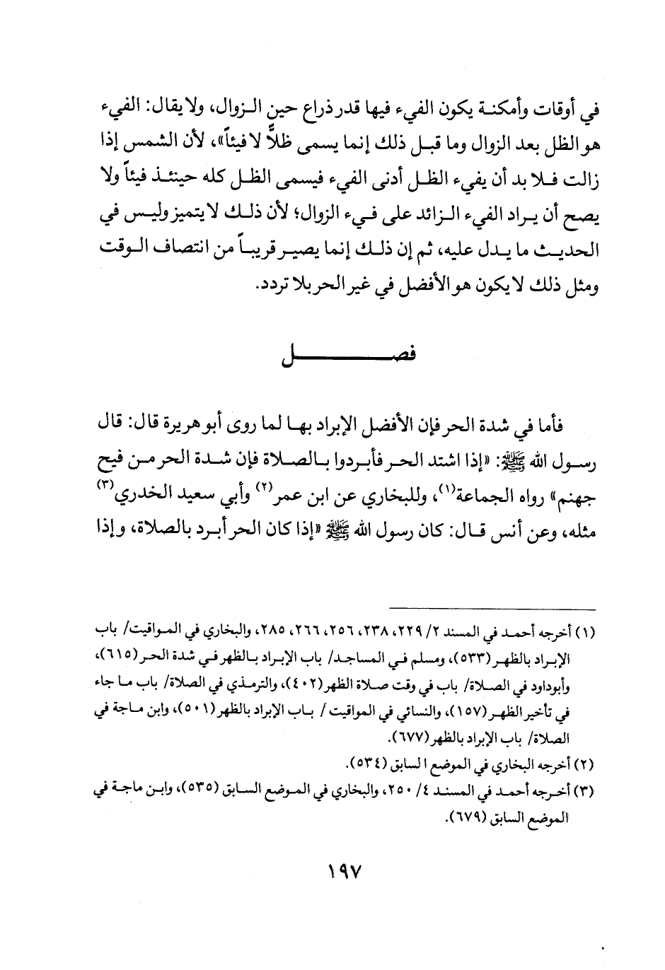 في أوقات وأمكنه يكون الفيء فيها قدر ذراع حين الزوال ولا يقال الفيء هو الظل بعد الزوال وما قبل ذلك إنما يسمى ظلا لا فيئا لأن الشمس إذا زالت فلا بد أن يفيء الظل أدنى الفيء فيسمى الظل كله حينئذ فيئا ولا يصح أن يراد الفيء الزائد على فيء الزوال لأن ذلك لا يتميز وليس في الحديث ما يدل عليه ثم أن ذلك إنما يصير قريبا من انتصاف الوقت ومثل ذلك لا يكون هو الأفضل في غير الحر بلا تردد